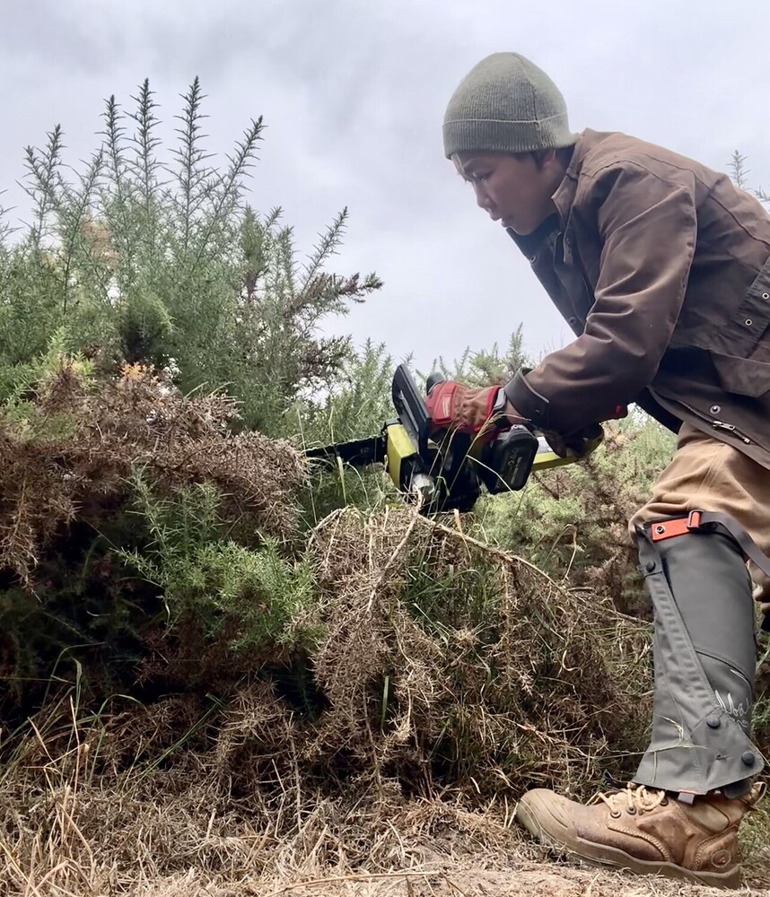 Case in point, the gorse that was left to “rewild” over decades gained solid footing across acres on my farm. Some bushes over two metres tall. You cannot walk through without coming out scratched, even in thick clothing. The only armour worthy of handling it involves welding gauntlets, oilskin jacket, heavy pants and – if I’m feeling cautious – snake gaiters. On hot days it is borderline absurd.